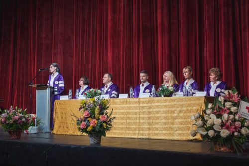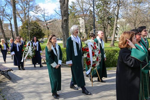 Тържеството започна с поднасяне на венци и цветя пред Докторския паметник от ректорското ръководство, деканите, заместник-деканите и директорите на всички звена на висшето училище. С едноминутно мълчание бе почетена паметта на загиналите здравни работници, отдали живота си в името на грижата за хората.